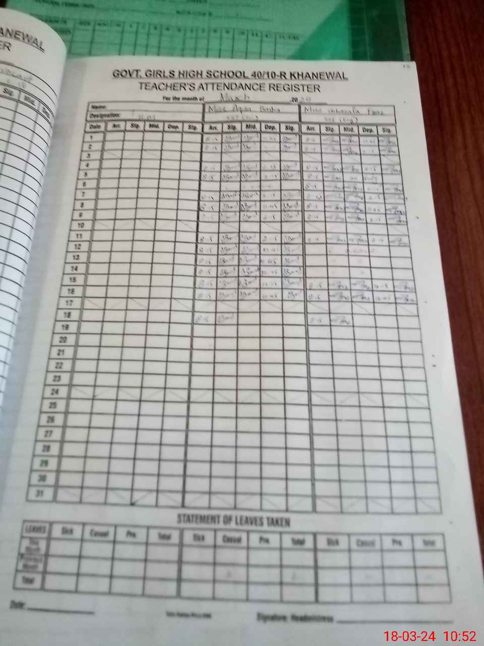 | Leave | Duty | Absent | Maternity | Medical | Ex- Pak |
