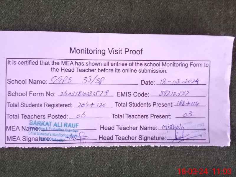 | EMIS Code: 39210397 | Name of School: GGPS 33 SP | |||