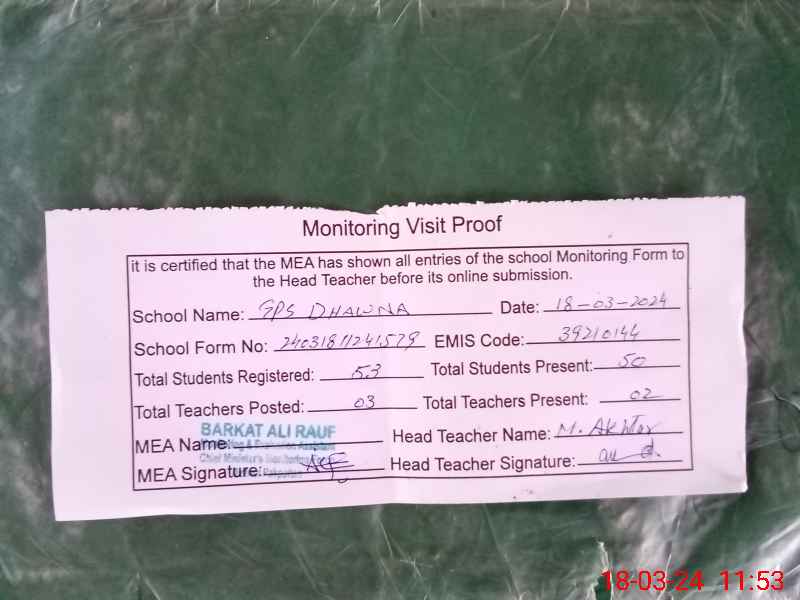 | EMIS Code: 39210144 | Name of School: GPS DHAWANA | |||