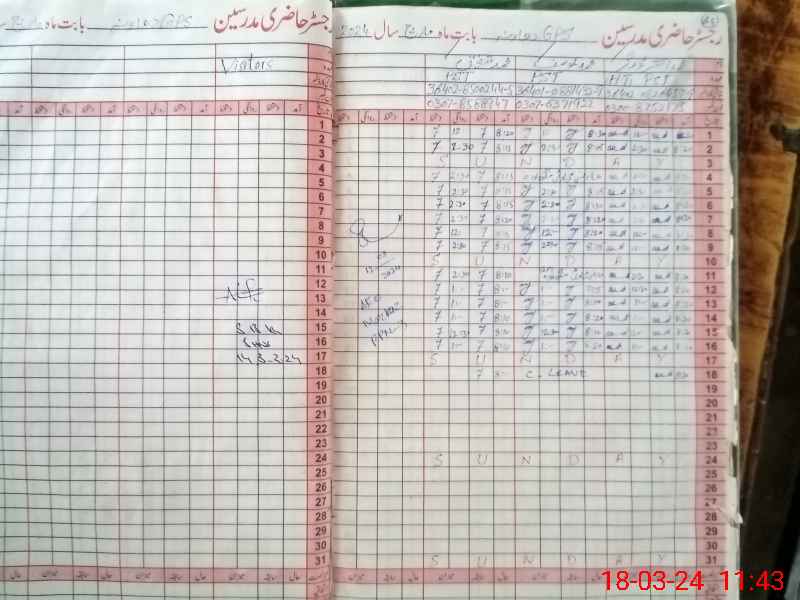 | School Visited by School Health & Nutrition Supervisor (No. of Visits) | 1 | Name1: | Shah Bano Khan | Name2: | Nil |