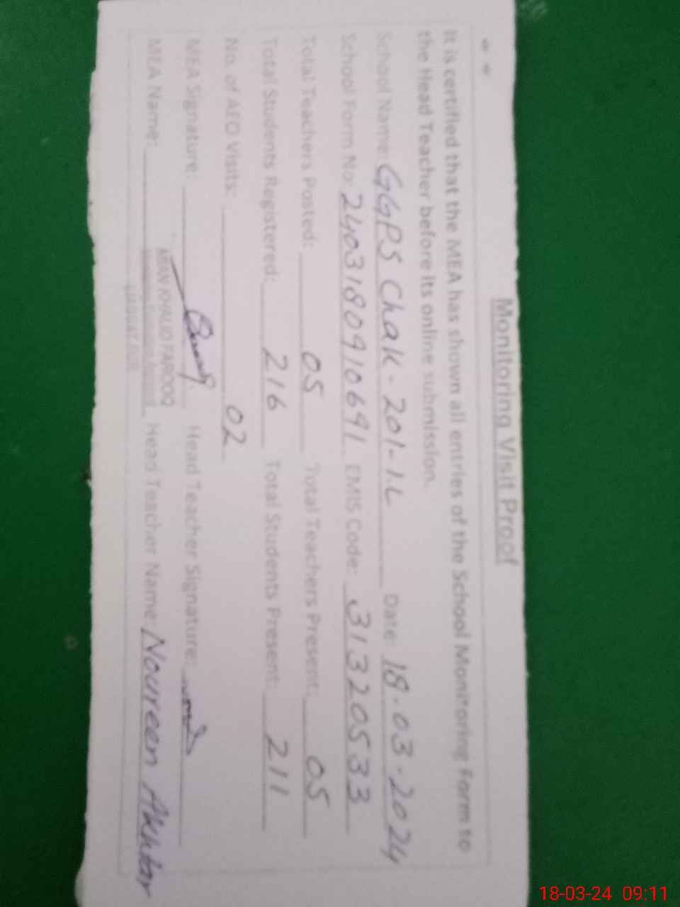 | EMIS Code: 31320533 | Name of School: GGPS CHAK NO. 201/1-L | |||