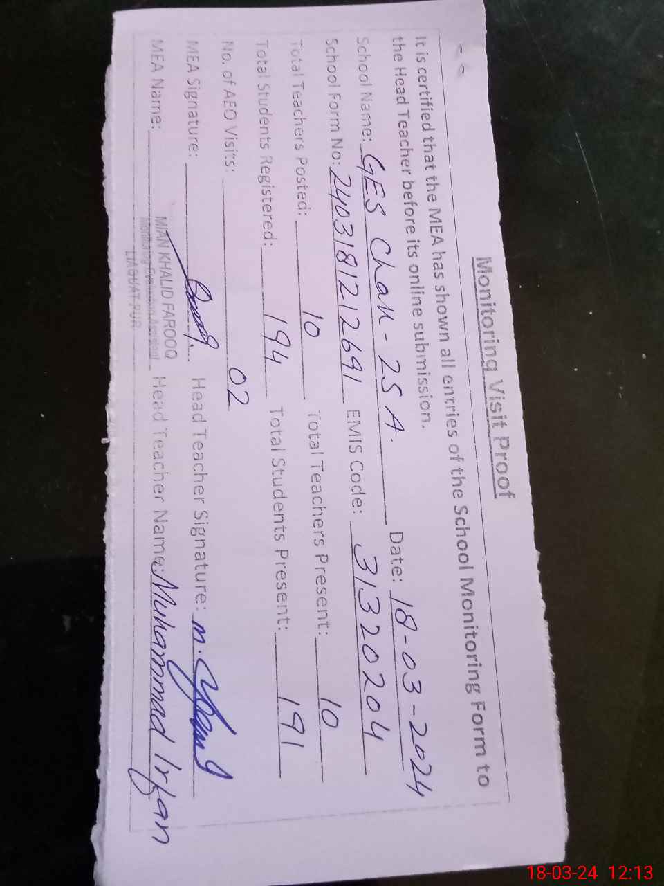 | EMIS Code: 31320204 | Name of School: GES CHAK 25/A | |||