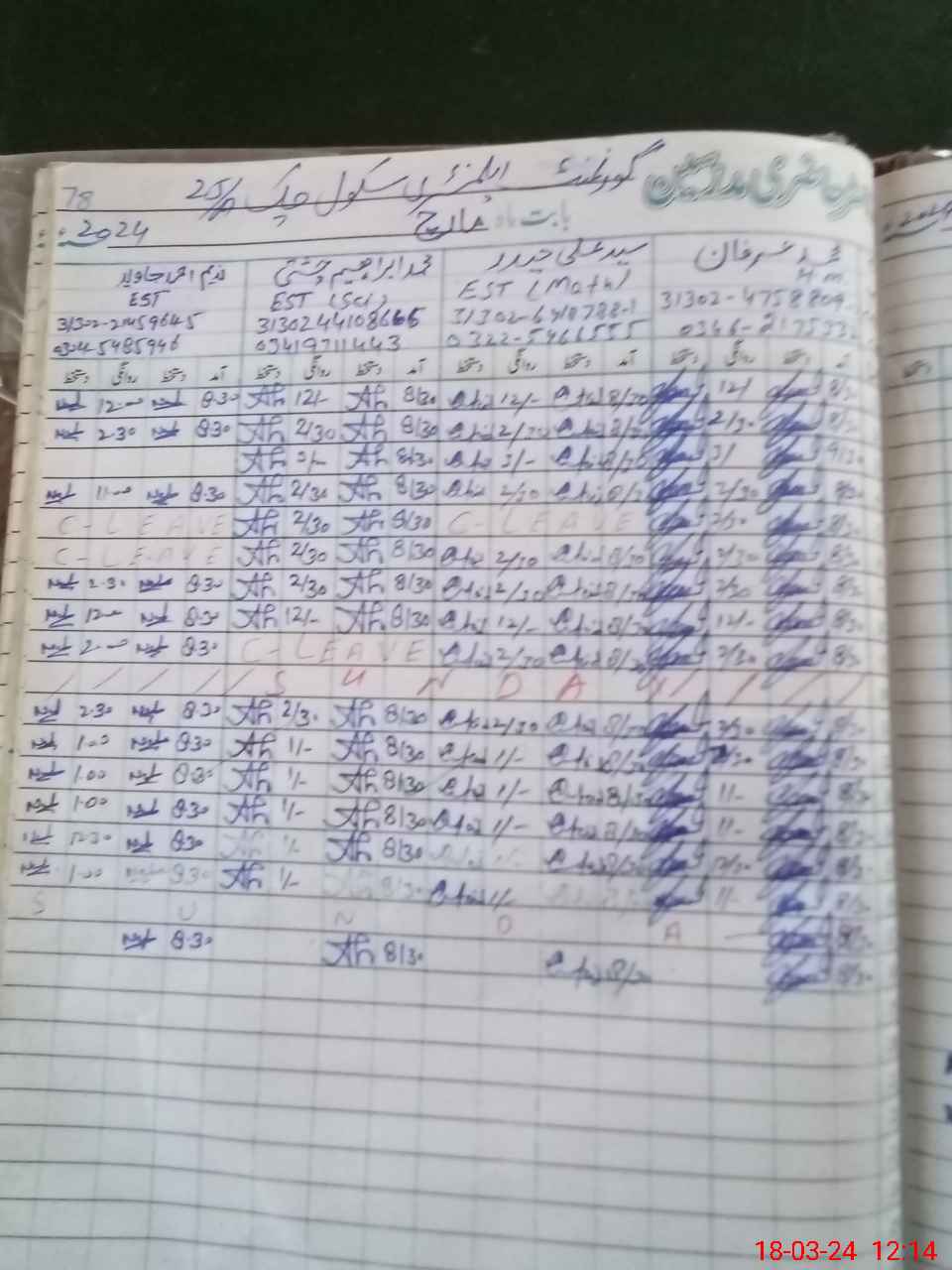| Name: MU**** IR**** Designation: (School Headmaster's/Headmistress's) SST (Sci) Phone/Cell Number: 03**** |