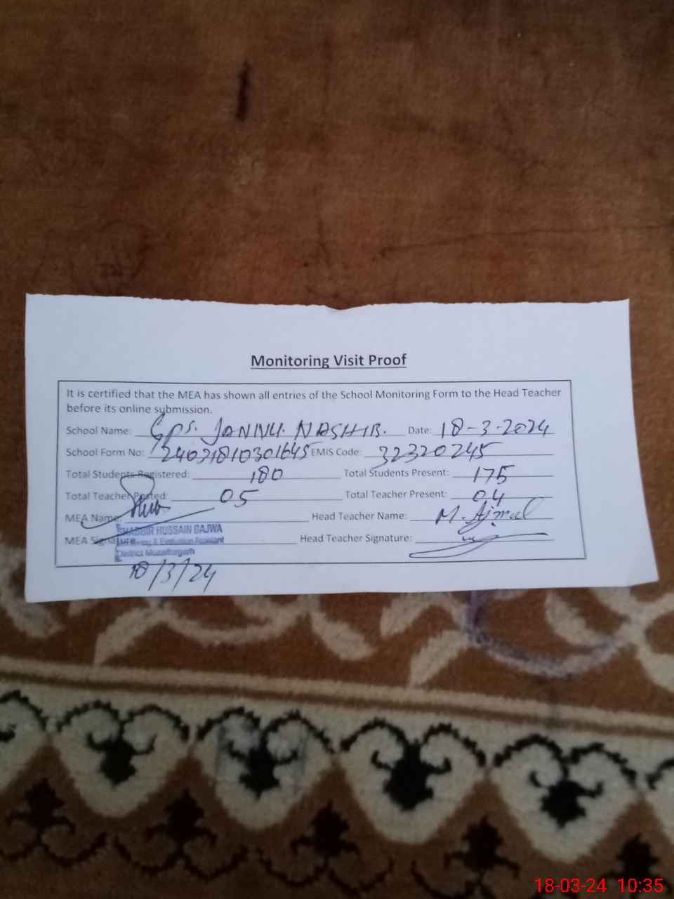 | EMIS Code: 32320245 | Name of School: GPS JANNU NASHAIB | |||