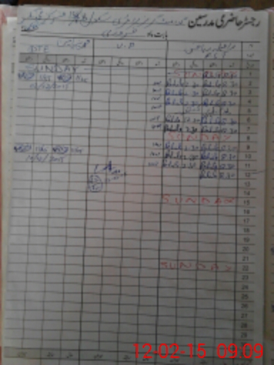 | CNIC | Full Name | Designation | R/C | Absence During Last Calender Month |