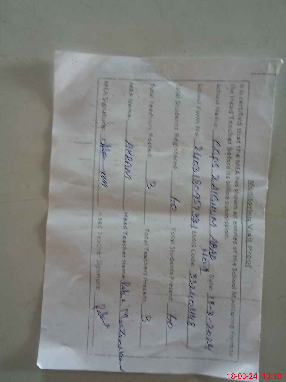 | Certified that this School was Inspected by the Undersigned MEA/DMO Today and the Information Stated Above is as Per Record. | |||||