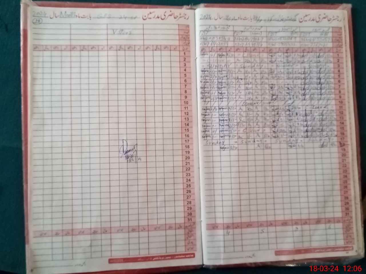 | CNIC | Full Name | Designation | R/C | Absence During Last Calender Month |