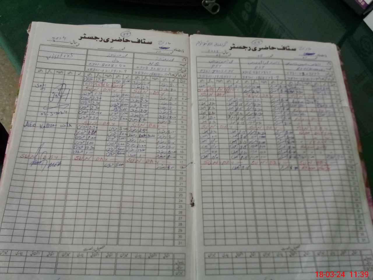 | CNIC | Full Name | Designation | R/C | Absence During Last Calender Month |