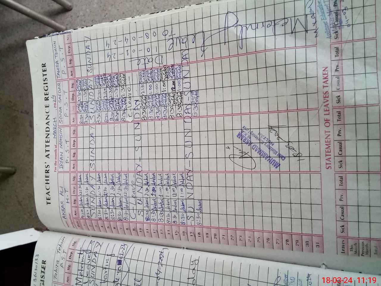 | Name: AK**** AL**** Designation: (School Headmaster's/Headmistress's) PST Phone/Cell Number: 03**** |