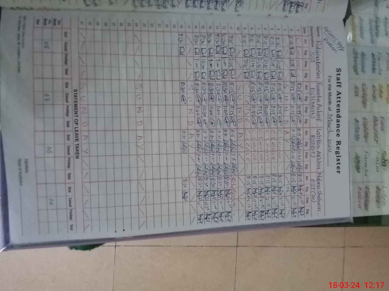 | 31**** | Sa**** Sa**** | 1 | 2 | 0 | 0 | 0 | 0 | 0 | 0 | 0 | 2 | Exam Duty | |