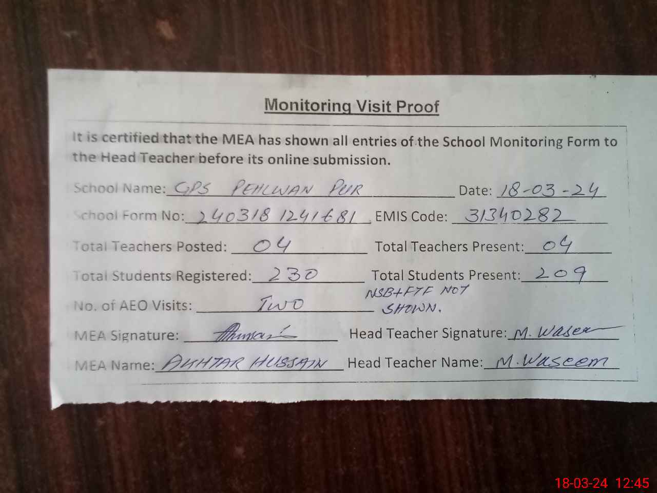 | EMIS Code: 31340282 | Name of School: GPS PEHLWAN PUR | |||