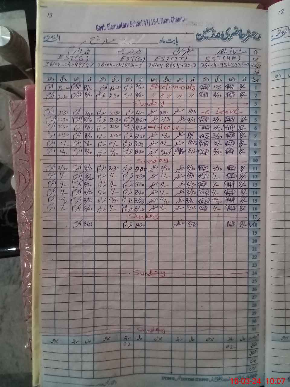 | 36**** | Sa**** Ah**** | PST | Regular | 0 | 0 | 0 | 0 | 0 | 0 | 0 | 0 | 0 | Exam Duty |