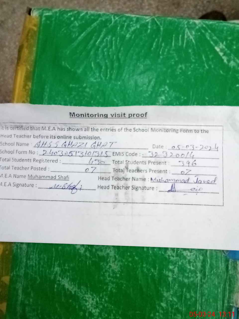| EMIS Code: 32320014 | Name of School: GHSS GHAZI GHAT | |||