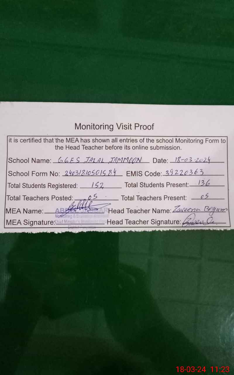 | EMIS Code: 39220363 | Name of School: GGES JALAL JAMMOON POST OFFICE MARI HAZARA | |||