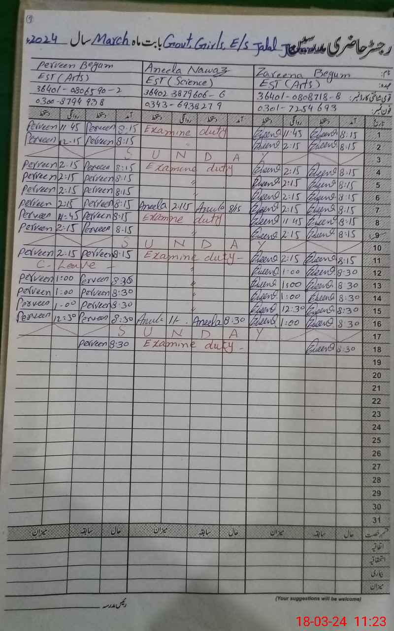 | 36**** | An**** Na**** | 2 | 0 | 0 | 0 | 0 | 0 | 0 | 0 | 0 | 0 | Exam Duty | |