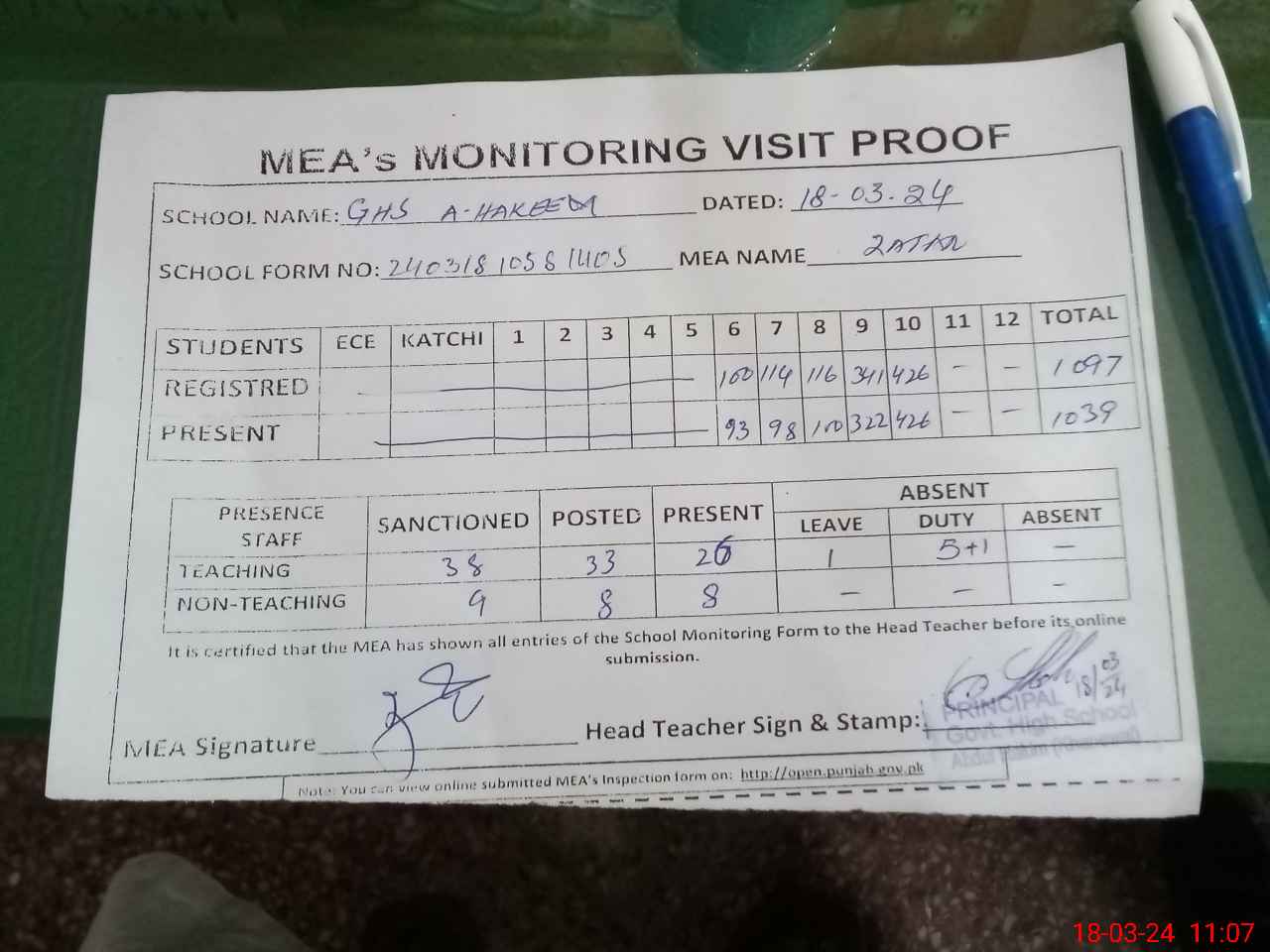 | EMIS Code: 36410021 | Name of School: GHS ABDUL HAKIM | |||