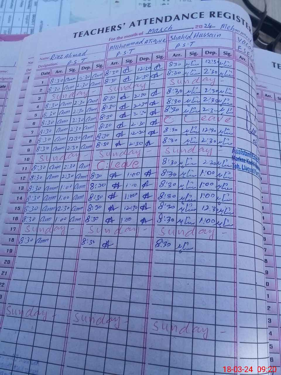 | Name: RI**** AH**** Designation: (School Headmaster's/Headmistress's) Pst Phone/Cell Number: 03**** |
