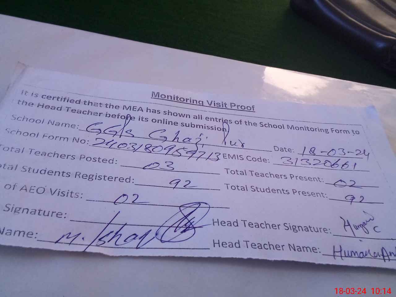 | EMIS Code: 31320661 | Name of School: GGPS GHAZI PUR | |||