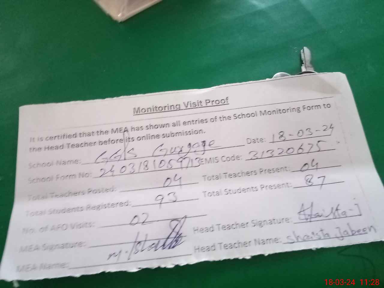 | EMIS Code: 31320675 | Name of School: GGPS TARNDA GOUR GAIJ | |||
