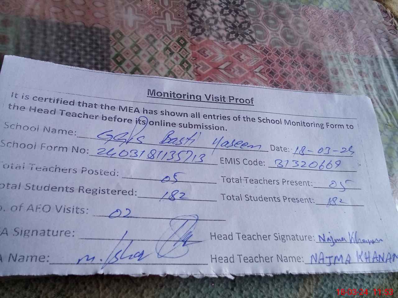 | EMIS Code: 31320669 | Name of School: GGPS BASTI GHULAM YASEEN | |||