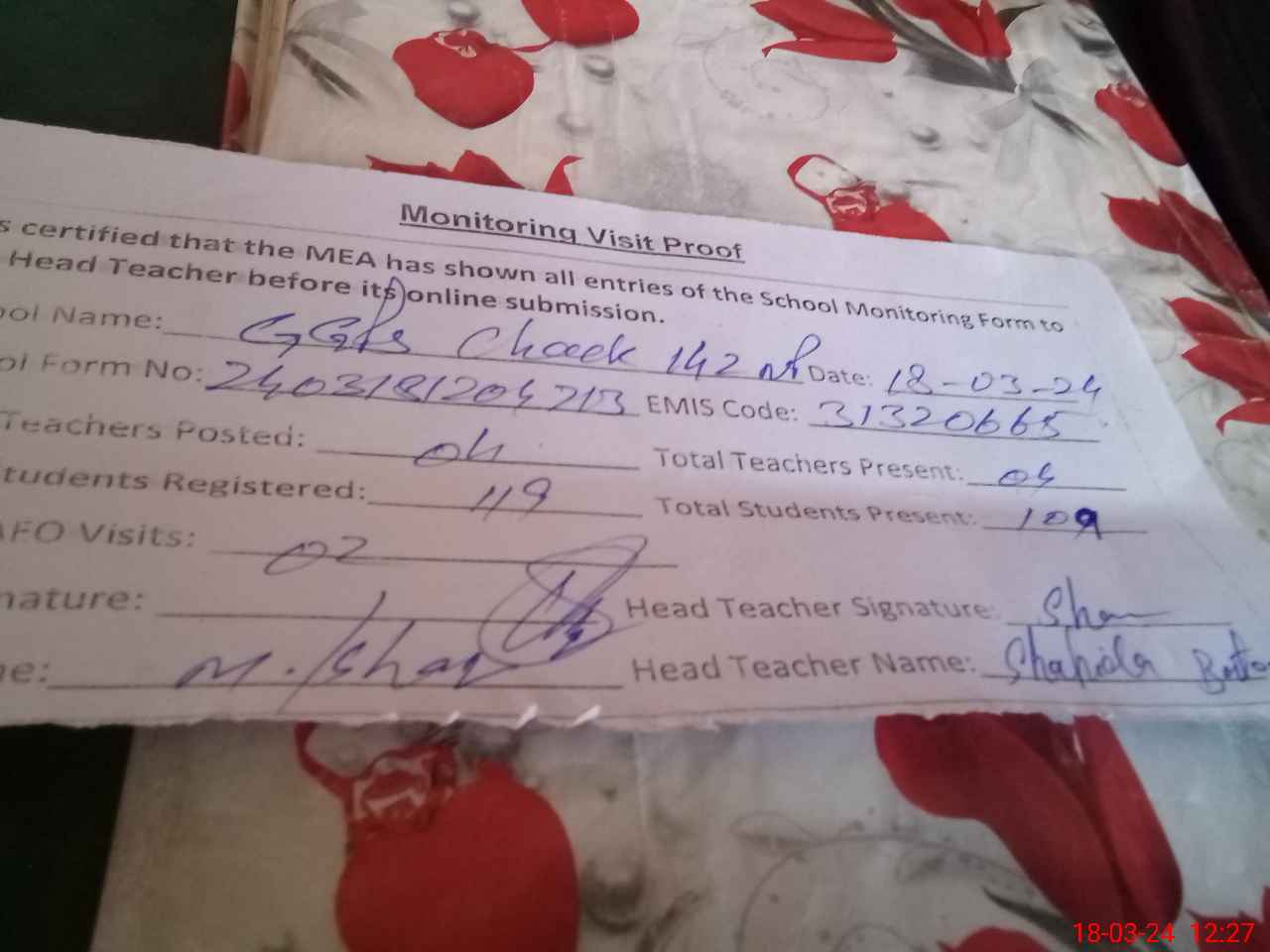 | EMIS Code: 31320665 | Name of School: GGPS CHAK 142/NP | |||