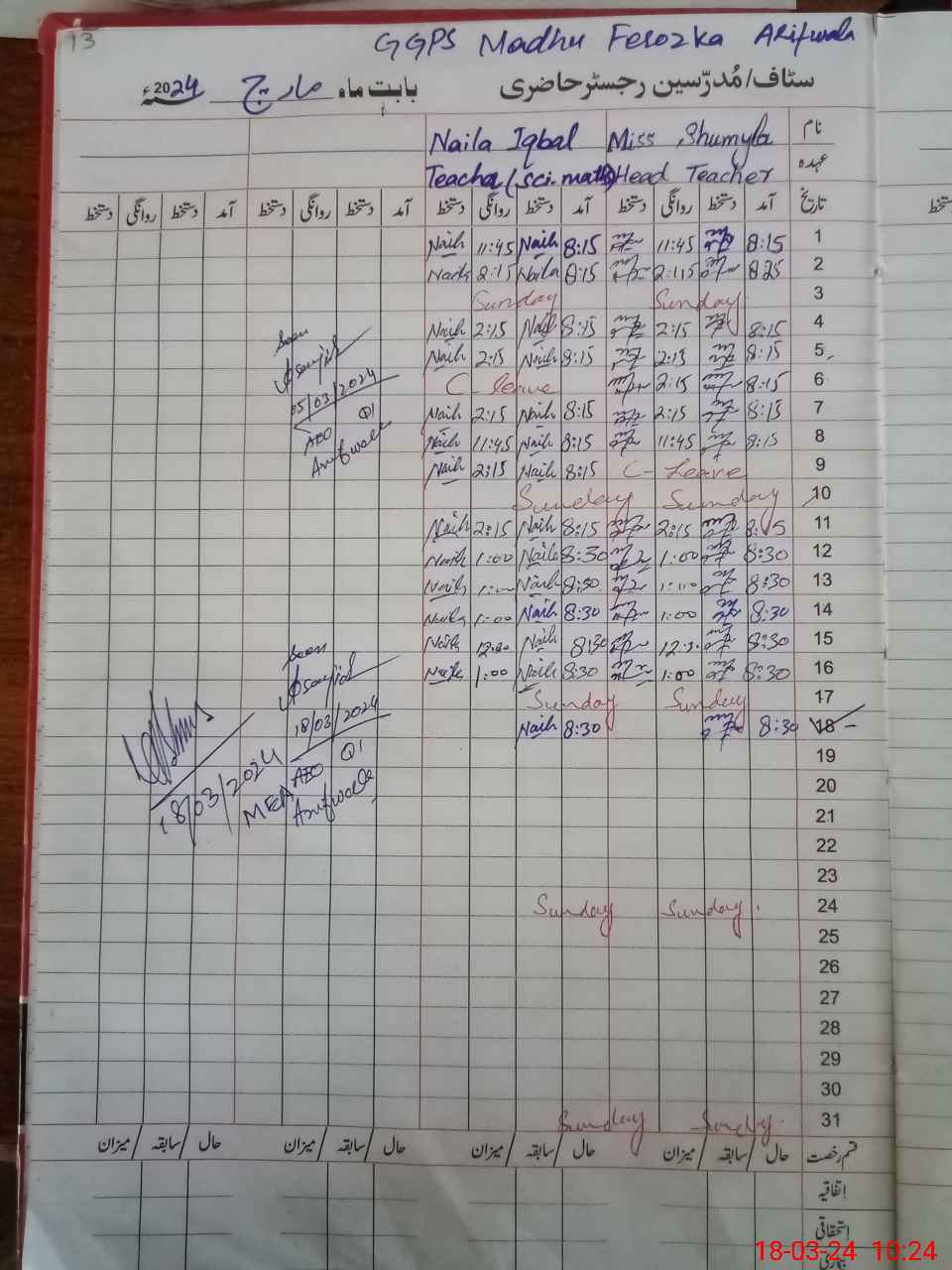 | Name: SH**** AN**** Designation: (School Headmaster's/Headmistress's) PST Phone/Cell Number: 03**** |
