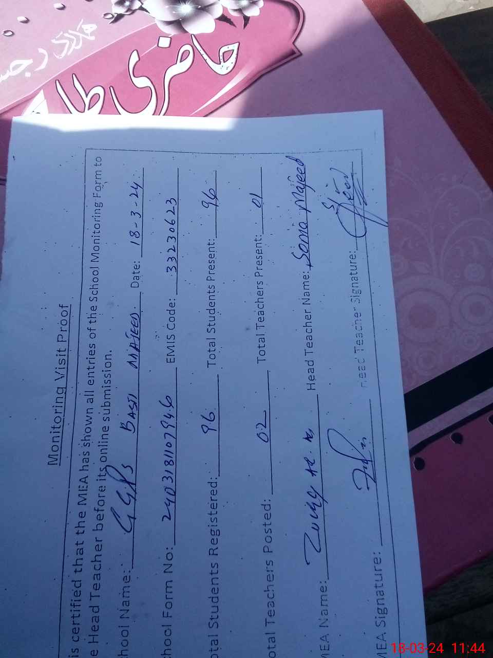 | EMIS Code: 33230623 | Name of School: GGPS BASTI MAJEED GOHAR | |||