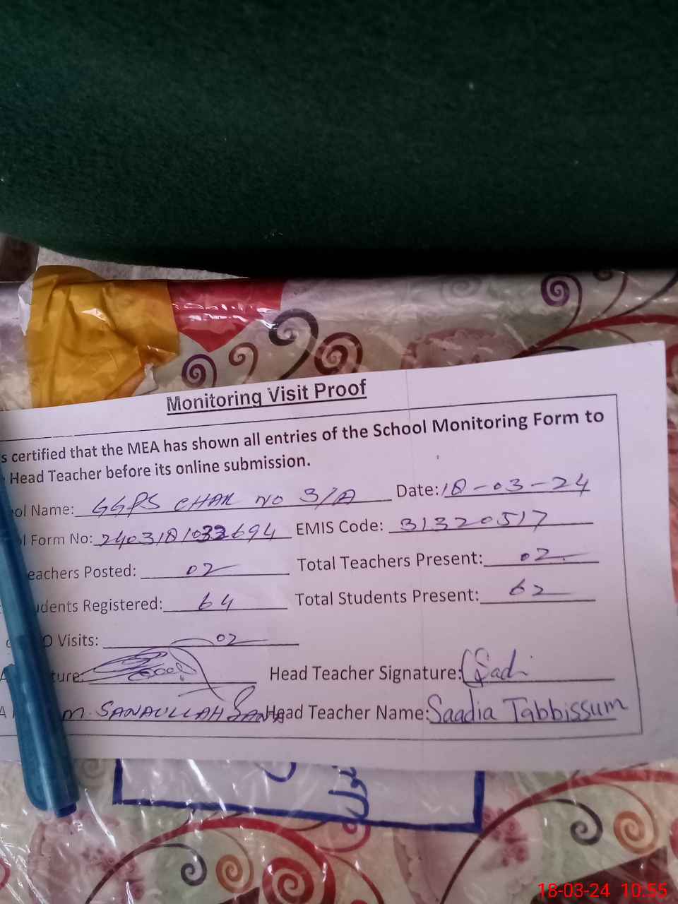 | EMIS Code: 31320517 | Name of School: GGPS CHAK NO. 3/A TOOR NAGAR | |||
