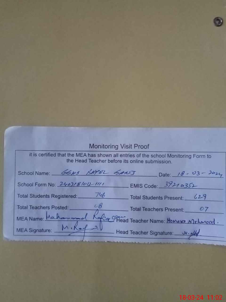 | EMIS Code: 39210352 | Name of School: GGHS BAYAL GANJ PAKPATTAN | |||