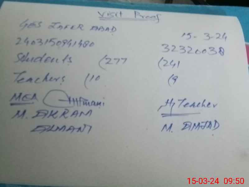 | EMIS Code: 32320038 | Name of School: GES ZAFAR ABAD | |||