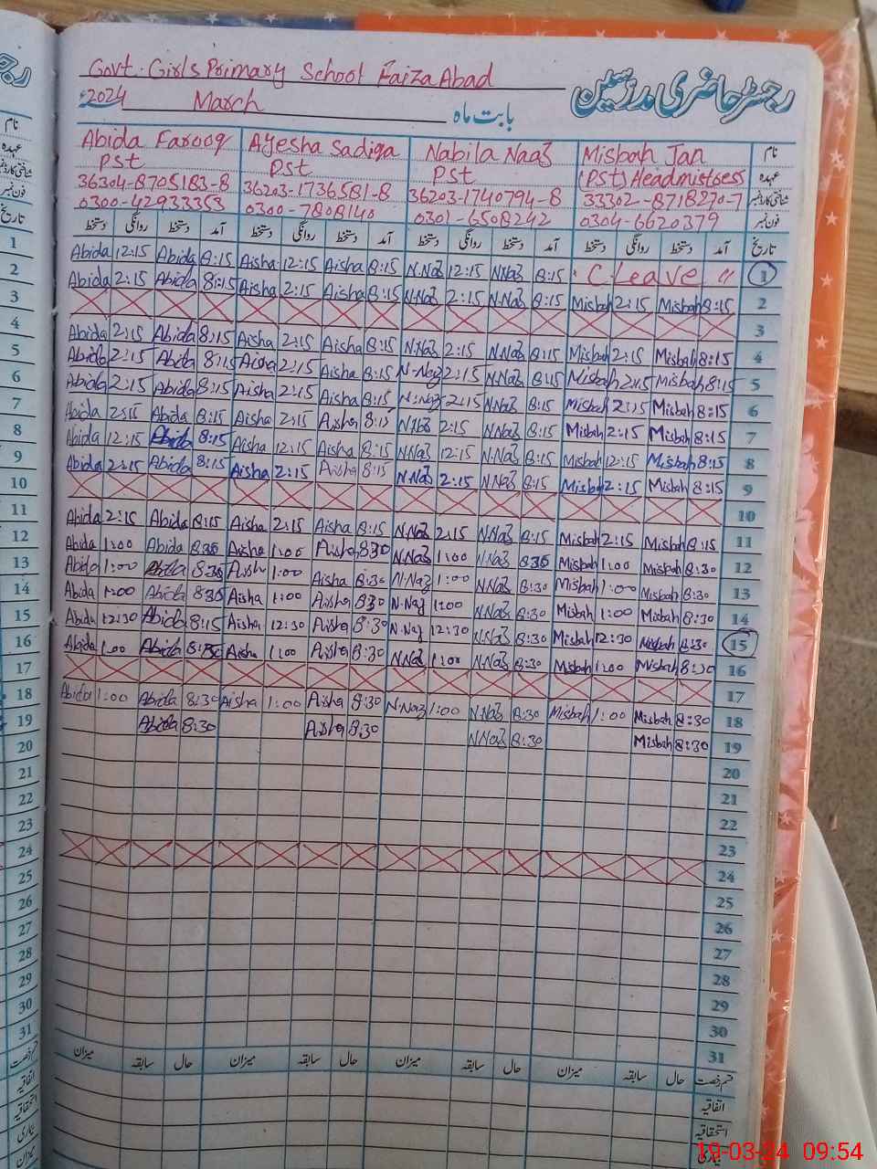 | Leave | Duty | Absent | Maternity | Medical | Ex- Pak |