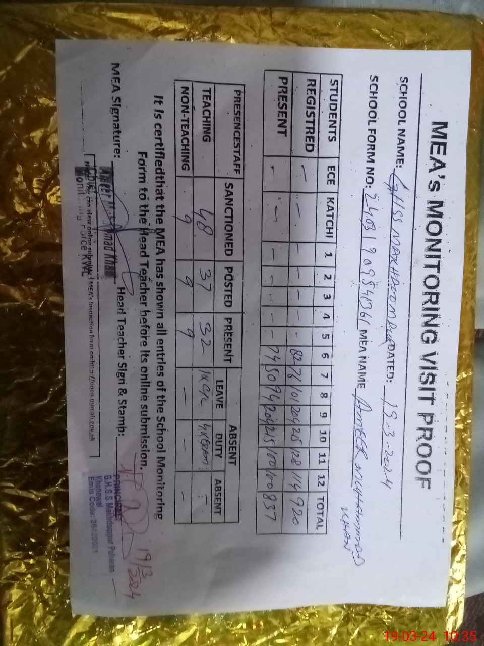 | Certified that this School was Inspected by the Undersigned MEA/DMO Today and the Information Stated Above is as Per Record. | |||||