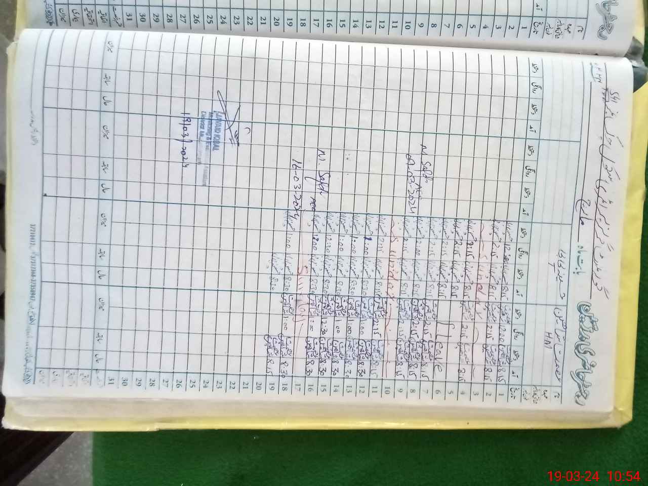 | CNIC | Full Name | Designation | R/C | Absence During Last Calender Month |
