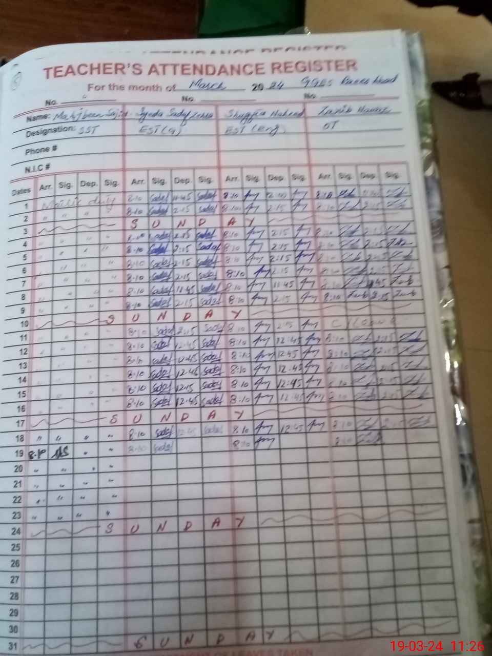 | Name: Ar**** Ba**** Designation: (School Headmaster's/Headmistress's) S.S.T.(Science) Phone/Cell Number: 03**** |