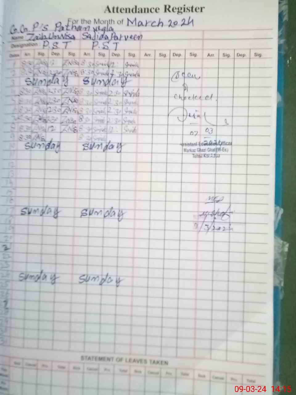 | Name: Za**** UnNi**** Designation: (School Headmaster's/Headmistress's) Pst Phone/Cell Number: 03**** |