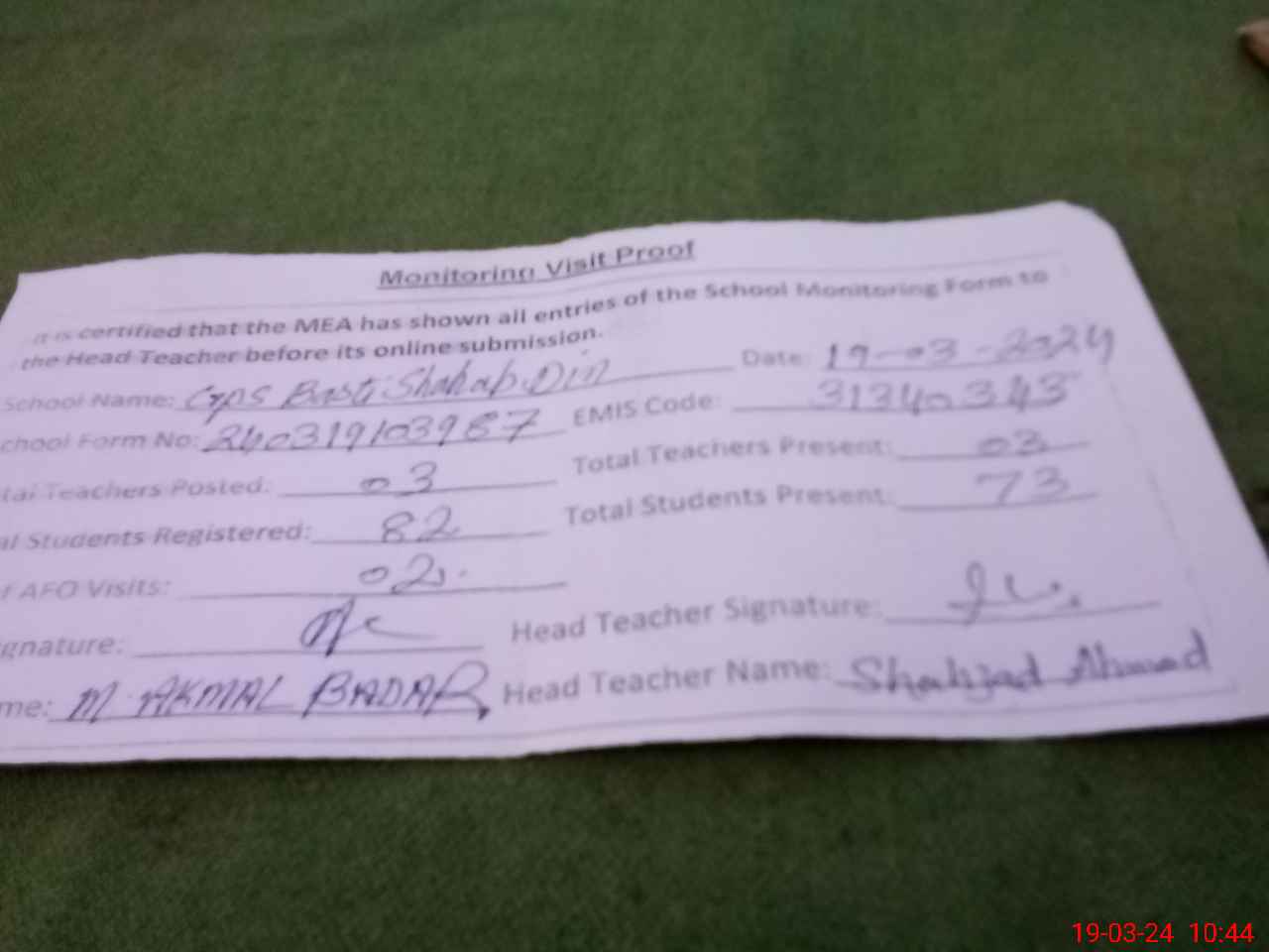 | EMIS Code: 31340343 | Name of School: GPS BASTI SHAHAB DIN | |||