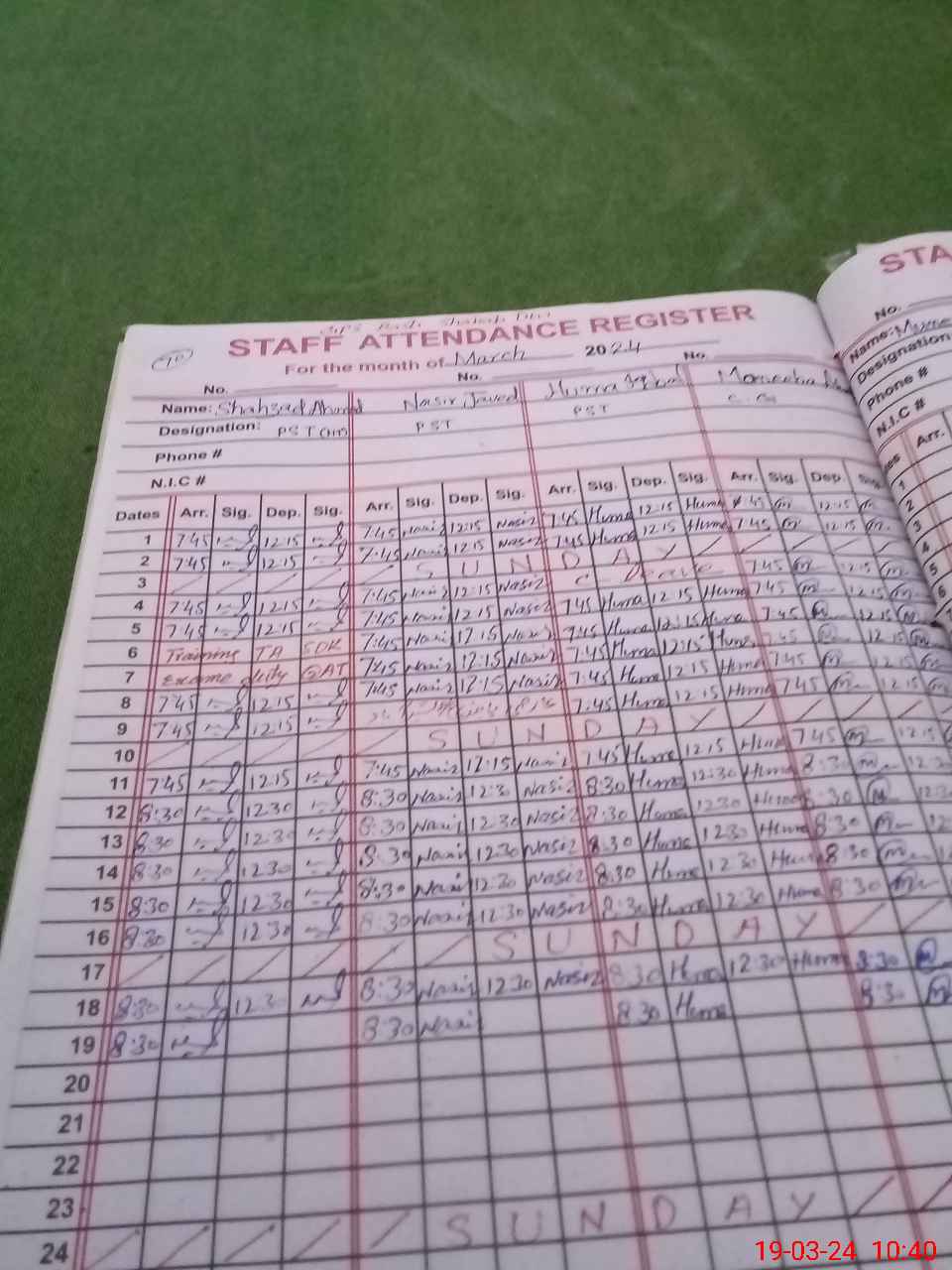 | Name: SH**** AH**** Designation: (School Headmaster's/Headmistress's) PST Phone/Cell Number: 03**** |