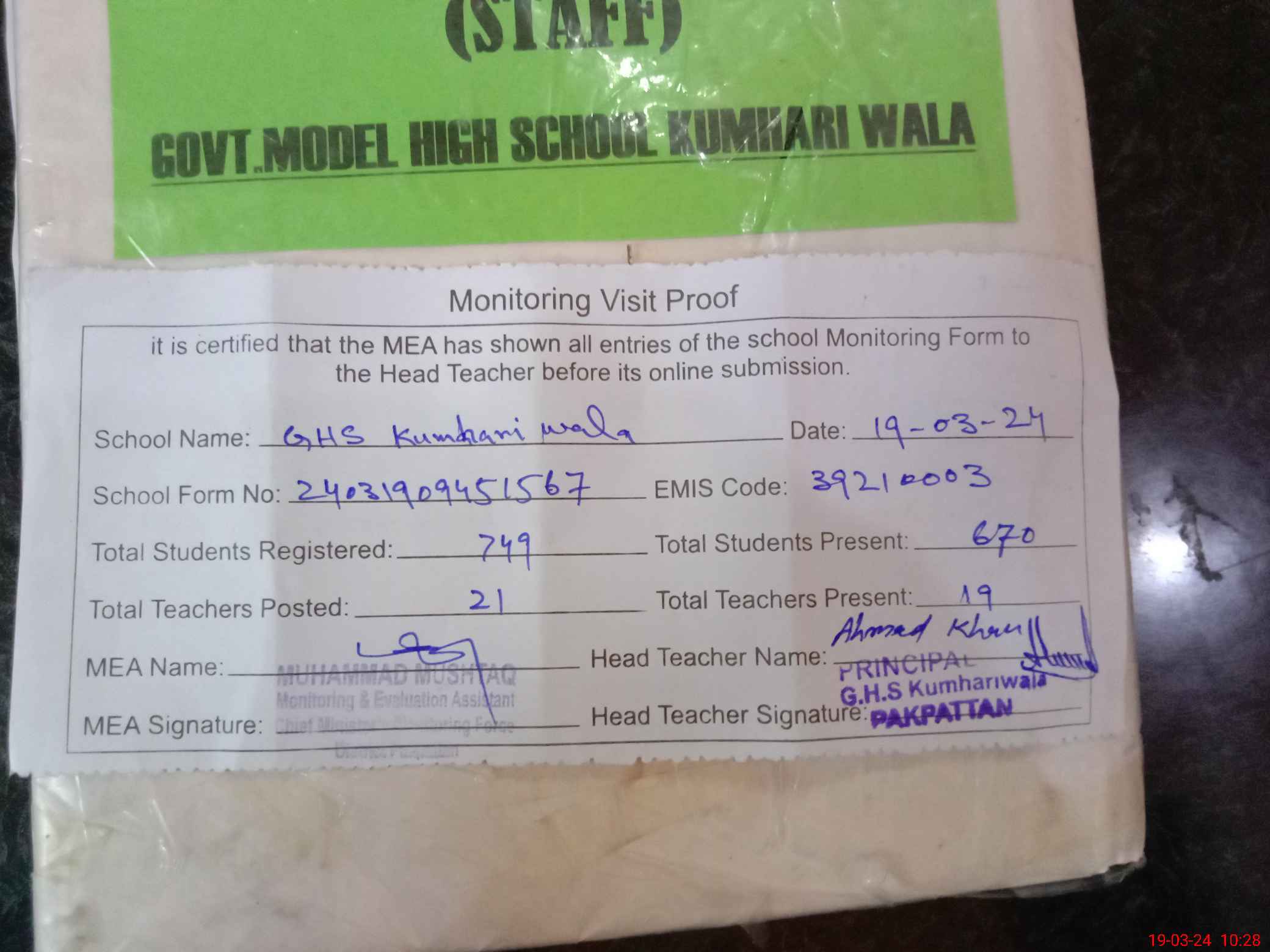 | EMIS Code: 39210003 | Name of School: GHS KUMHARAI WALA | |||
