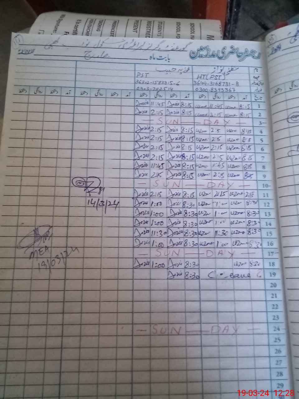 | Name: Uz**** Na**** Designation: (School Headmaster's/Headmistress's) PST Phone/Cell Number: 03**** |