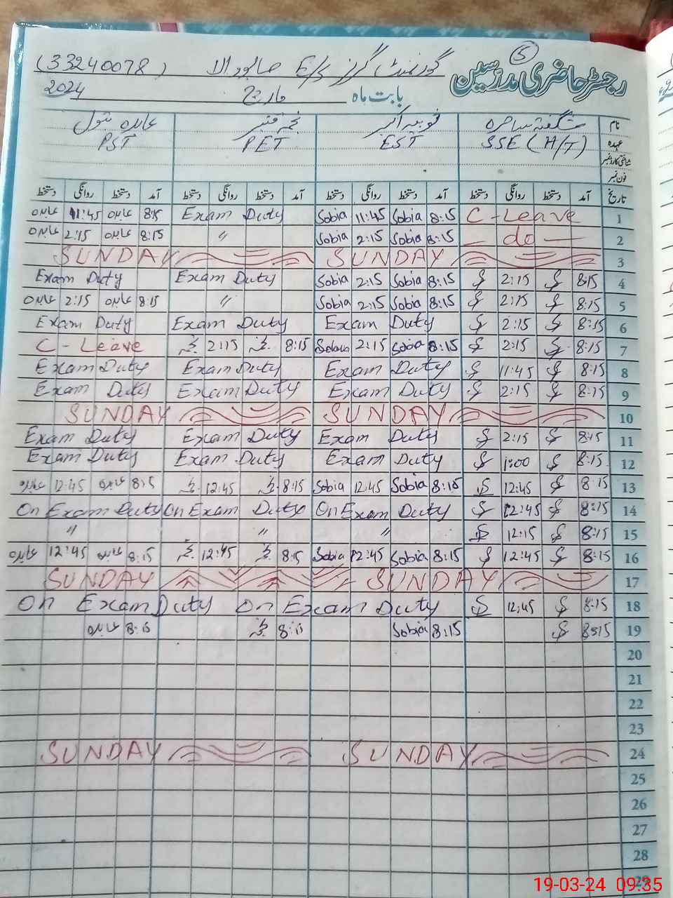 | Remarks (Use Separate Page if Required): Teacher Mehwish Sharif PST found absent since last two months | |||||