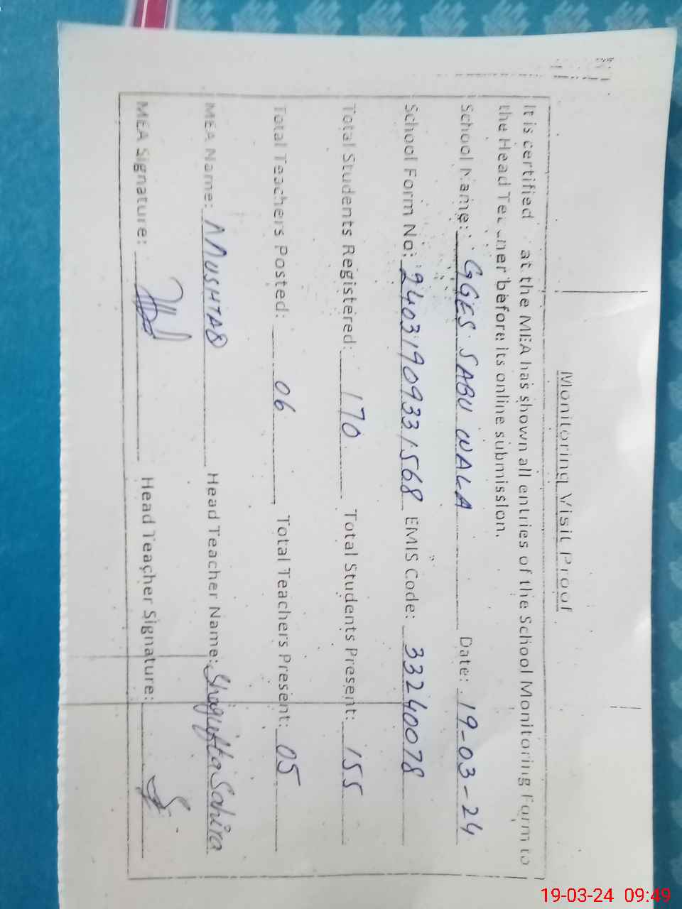 | EMIS Code: 33240078 | Name of School: GGES SABU WALA | |||