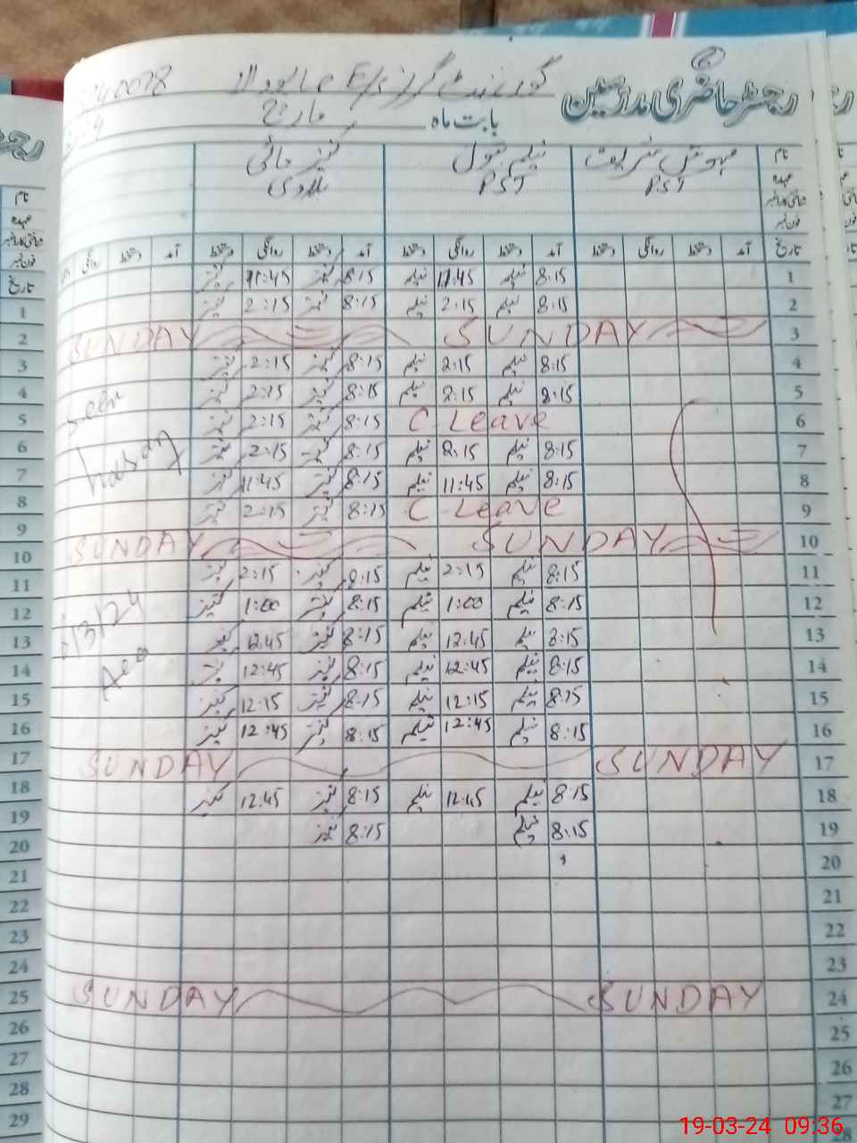 | 36**** | Me**** Sh**** | 1 | 0 | 0 | 29 | 0 | 0 | 0 | 0 | 0 | 0 | Absent (Un-Authorized) | |