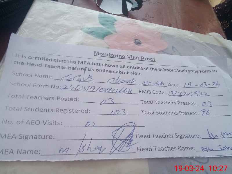 | EMIS Code: 31320522 | Name of School: GGPS CHAK NO.8/A | |||