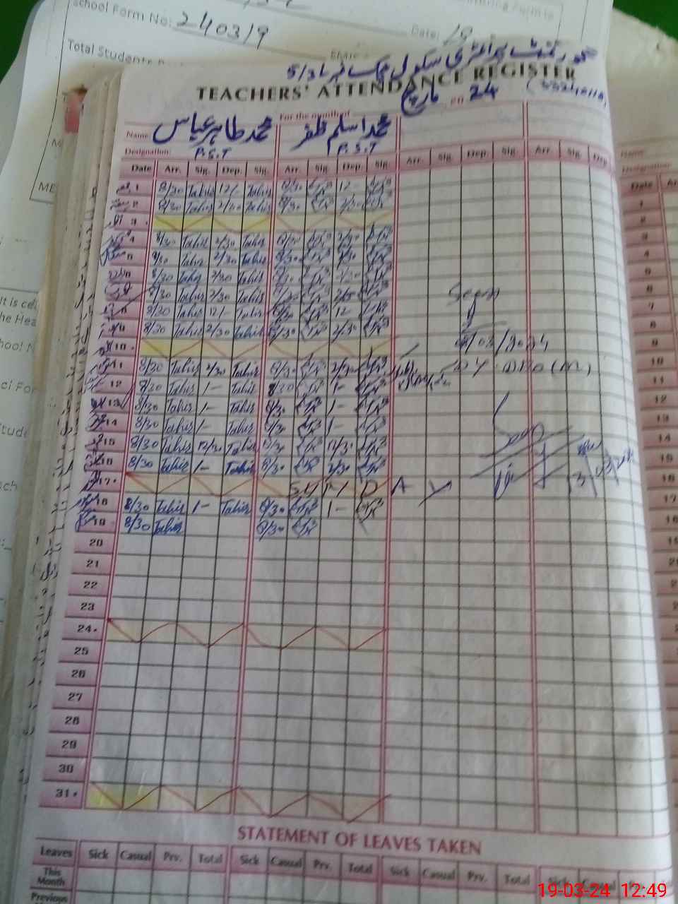 | Name: MTA**** AB**** Designation: (School Headmaster's/Headmistress's) PST Phone/Cell Number: 03**** |