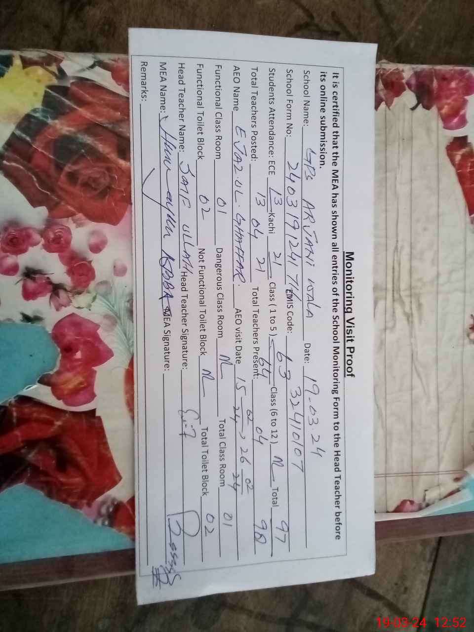 | EMIS Code: 32410107 | Name of School: GPS ARJANI WALA | |||