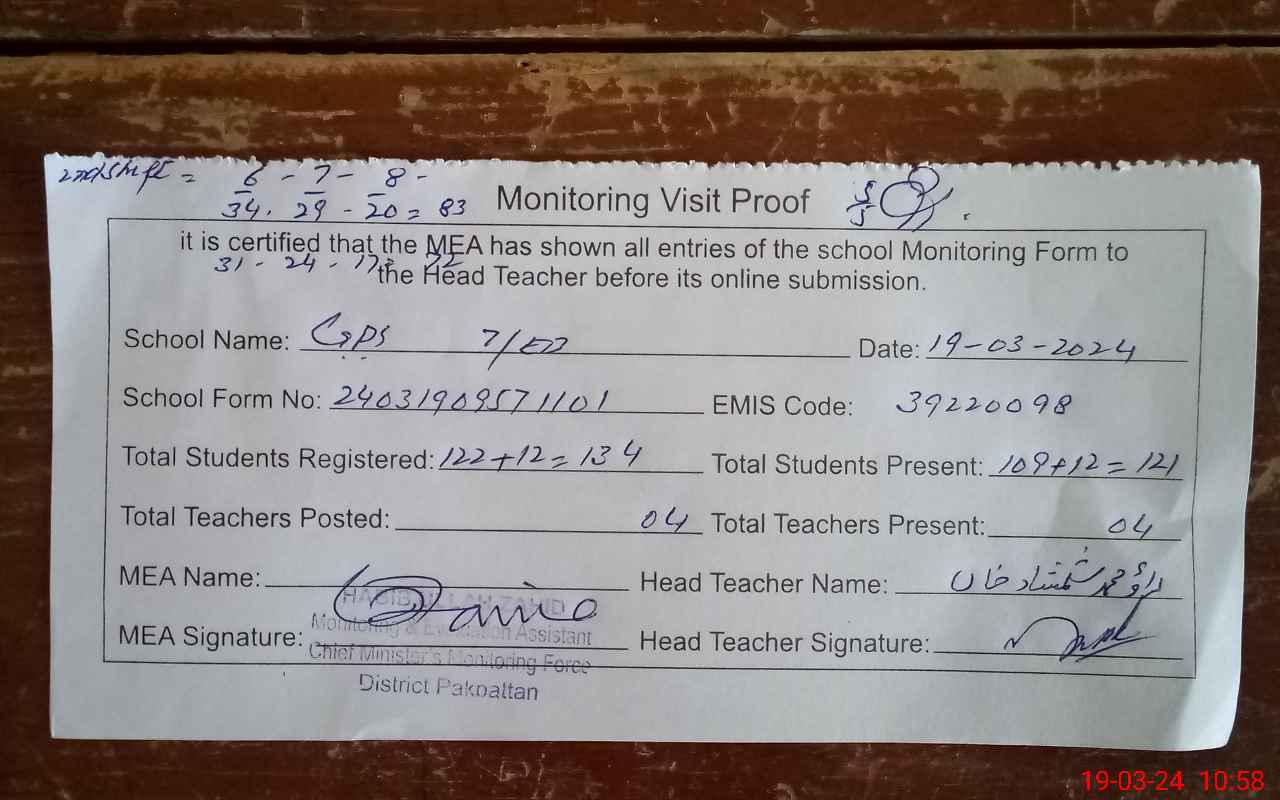 | EMIS Code: 39220098 | Name of School: GPS 7 EB | |||