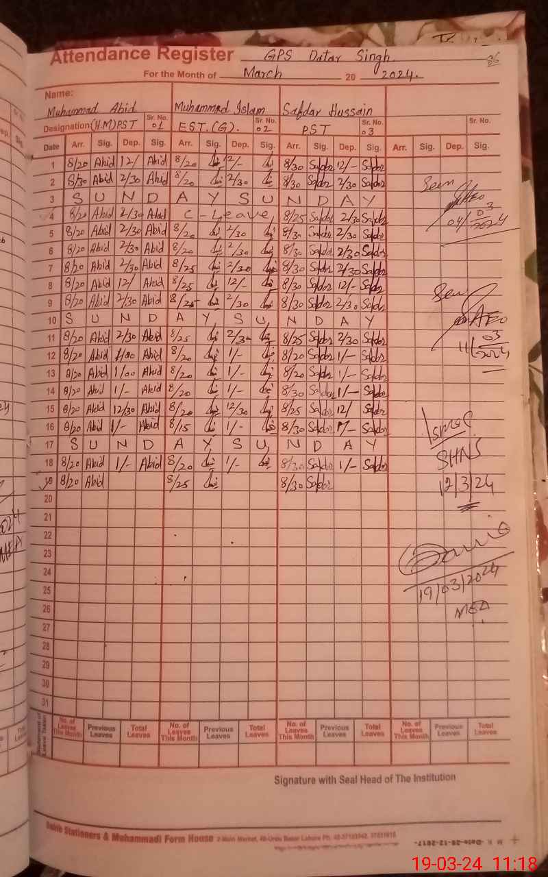 | Name: MU**** AB**** Designation: (School Headmaster's/Headmistress's) PST Phone/Cell Number: 03**** |