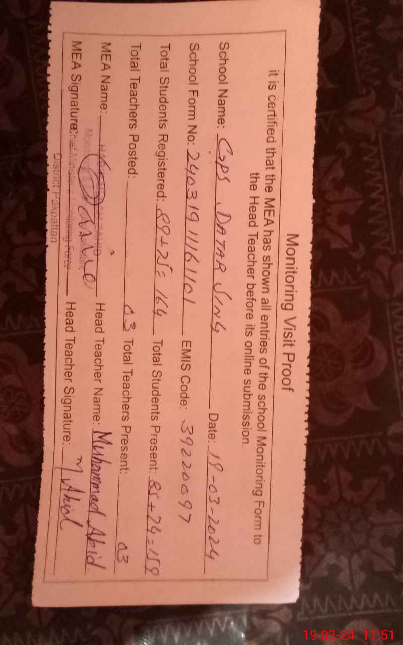 | EMIS Code: 39220097 | Name of School: GPS DATAR SINGH | |||