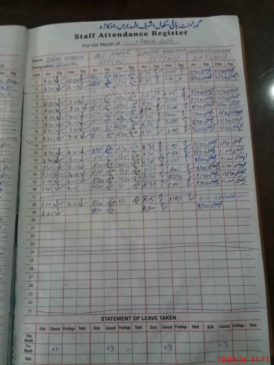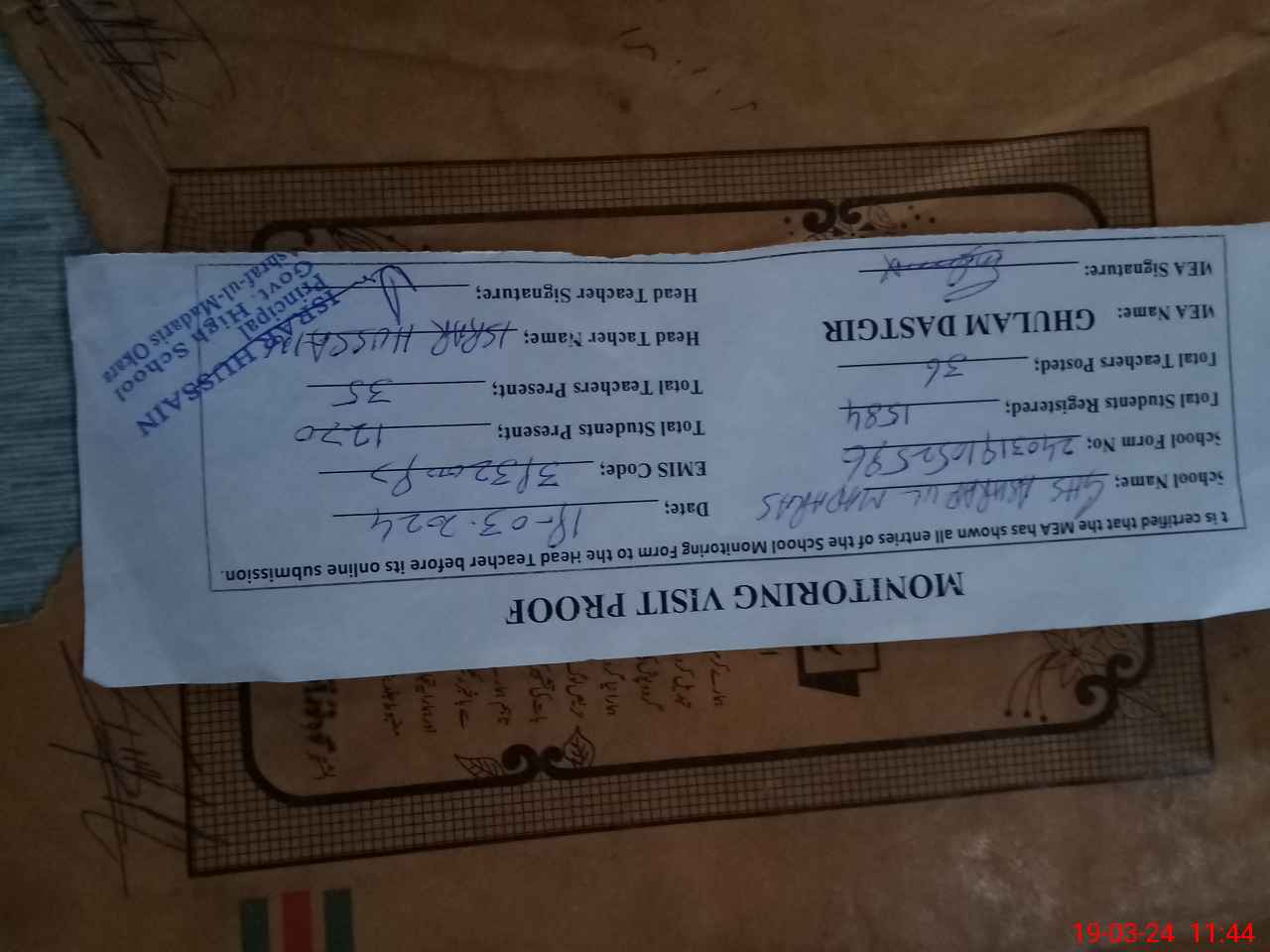 | Name: IS**** HU**** Designation: (School Headmaster's/Headmistress's) PRINCIPAL Phone/Cell Number: 03**** |