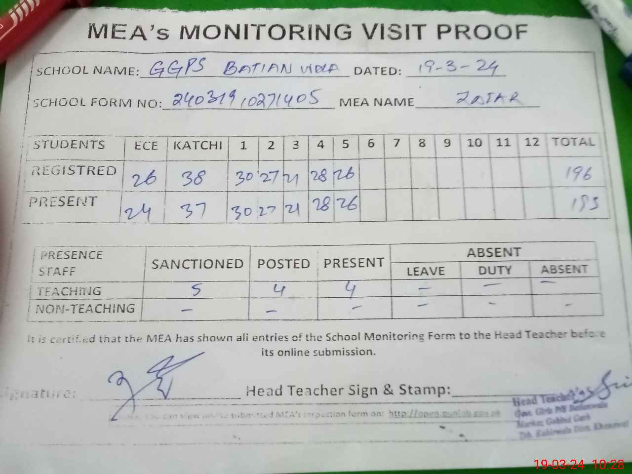 | EMIS Code: 36410455 | Name of School: GGPS BATIAN WALA, ABDUL HAKIM | |||